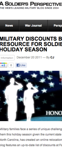 Military News picked up our press releases on the Armys Army’s “Special Friends Ops” and the Military Discounts blog. http://military-online.blogspot.com/