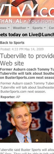 WAATV mentions coach Tommy Tuberville as he joins Buster Sports. Original article in WAATV archives