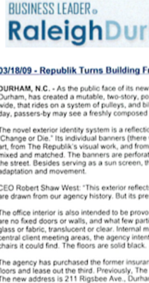 The Triangle Business Journal gives props to the Republik for the new building exterior design. Read more about it here Original printed article in Triangle Business Journal archives contains photograph of building’s exterior