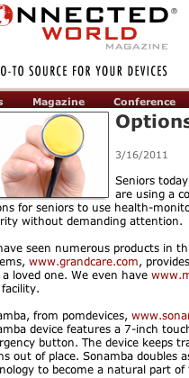Connected World Magazine features Sonamba as an option for senior monitoring. Read more about it here