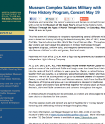As the country’s First Sanctuary for Soldiers, Fayetteville/Cumberland County dedicates the entire month of May to honor soldiers, vets, and their families who have put it all on the line to defend our country. http://news.ncdcr.gov/