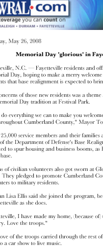 WRAL covers: Memorial Day ‘glorious’ in Fayetteville’s Festival Park. Read more about it here