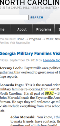 WUNC – NORTH CAROLINA PUBLIC RADI features Army’s Army and Fayetteville